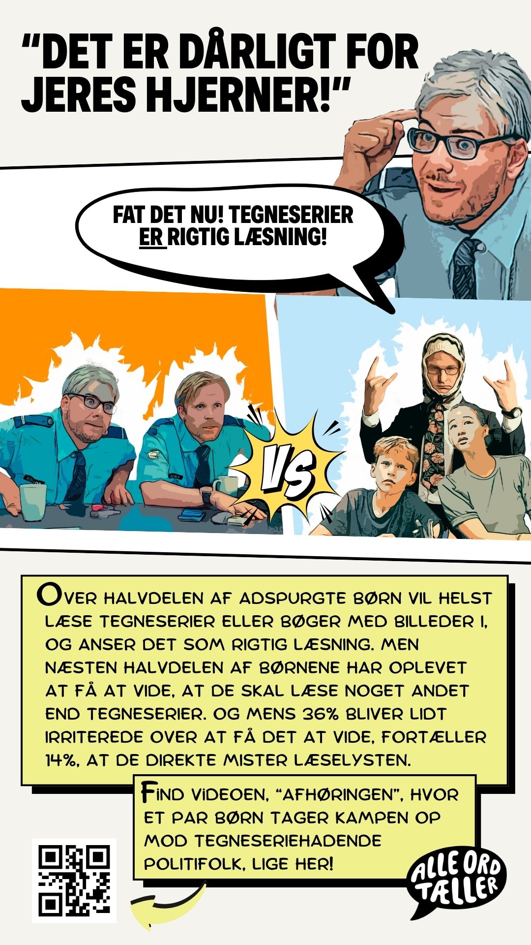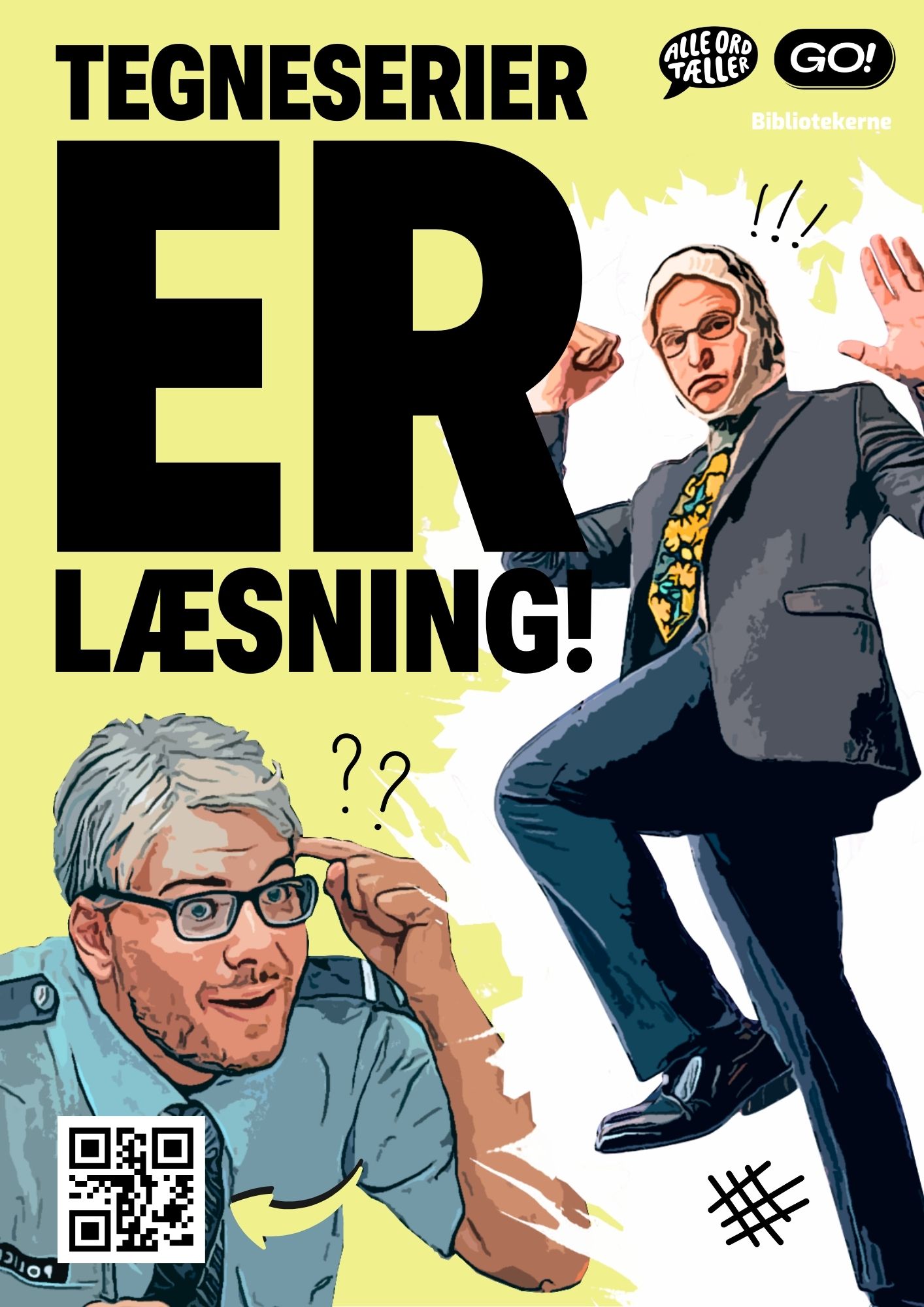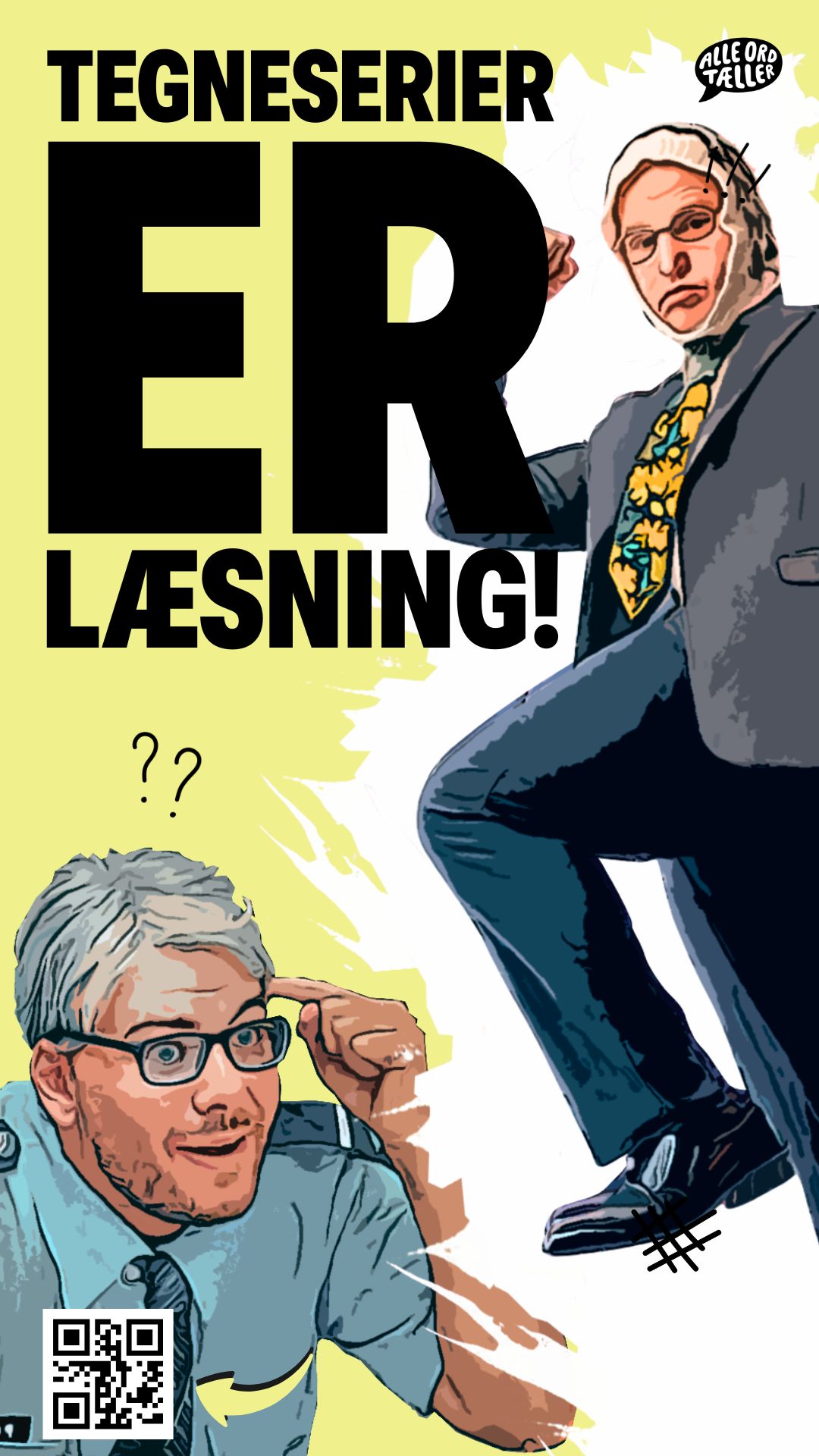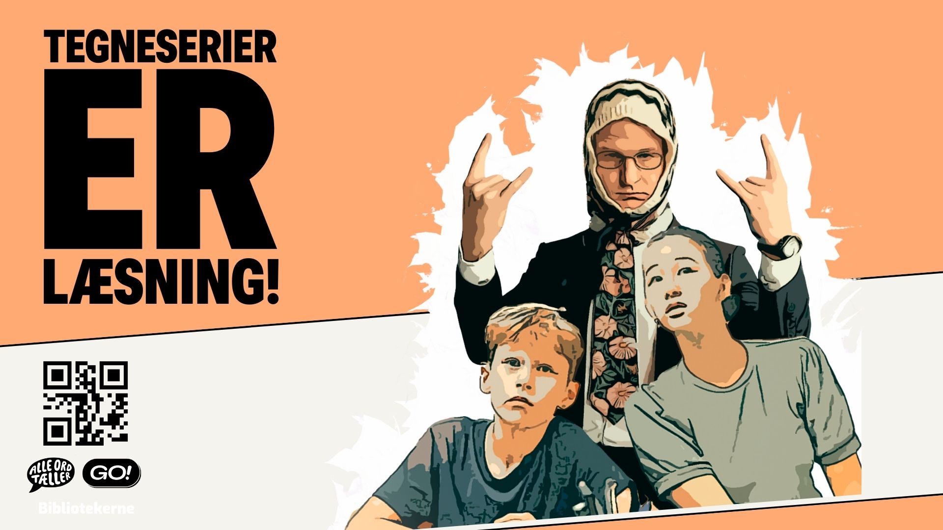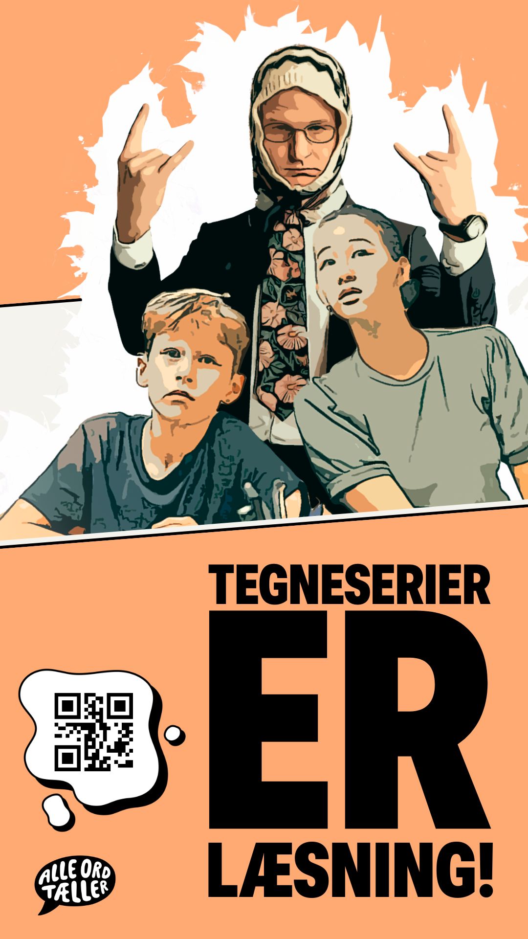 Her på siden finder du eksempler på og link til forskellige grafikker til print og digitalt brug i forbindelse med kampagnen "Tegneserier ER læsning!". Kampagnen kører fra uge 35 og må sættes op frem til d. 1. december 2025.